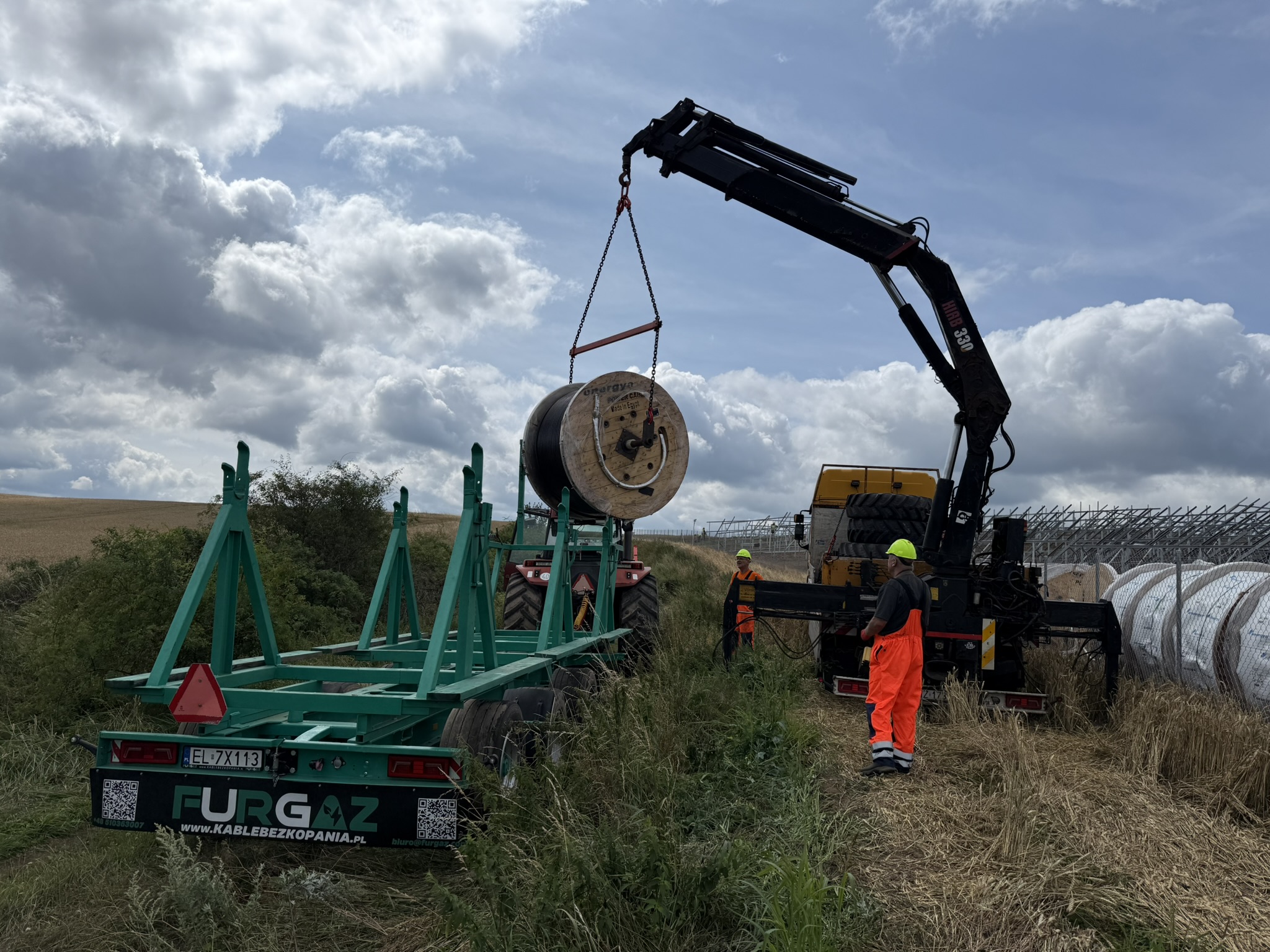 Wyzwania inwestycyjne: przewiert sterowany na głębokości 7 m pod dnem rzeki Noteć o długości 150 m, trasa płużenia po nieczynnym nasypie kolejowym